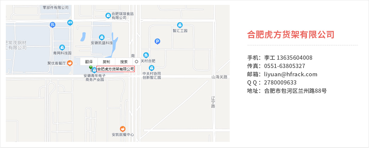 - 合肥虎方貨架有限公司從事經(jīng)營倉儲貨架、物流周轉(zhuǎn)及搬運設備、倉庫管理系統(tǒng)等相關產(chǎn)品的生產(chǎn)、銷售、設計、安裝及采購集成服務。 公司主要產(chǎn)品:貨位式貨架、倉儲重型貨架、擱板式貨架、閣樓式貨架、駛?cè)胧截浖堋撈脚_貨架、穿梭式...